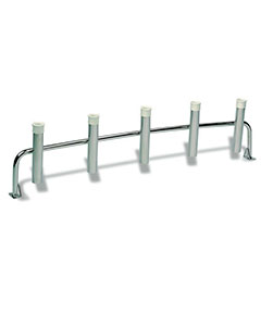 • Pour 5 cannes • Inox marine • Largeur 1350 mm • Hauteur tube 295 mm • Fixations fixes • 5 tubes ø intérieur 40 mm
