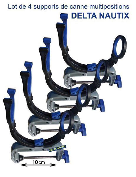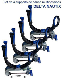Support de cannes pour toute barque. Excellent rapport qualité / prix. Fixation par serre joint très pratique et efficace. Évite de percer la coque et permet les déplacements. Fixation horizontale ou verticale possible car le support canne est à balancier. Il pivote horizontalement et verticalement. Diamètre des supports : 5cm. Convient pour toute canne avec talon diamètre maximum 5cm.