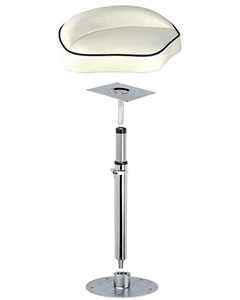 Siège bicyclette assis / debout monté sur pied télescopique (hauteur de 430mm à 740mm) complet en aluminium avec systèmes de fixation (platine haute + platine basse). Adaptable toutes barques.