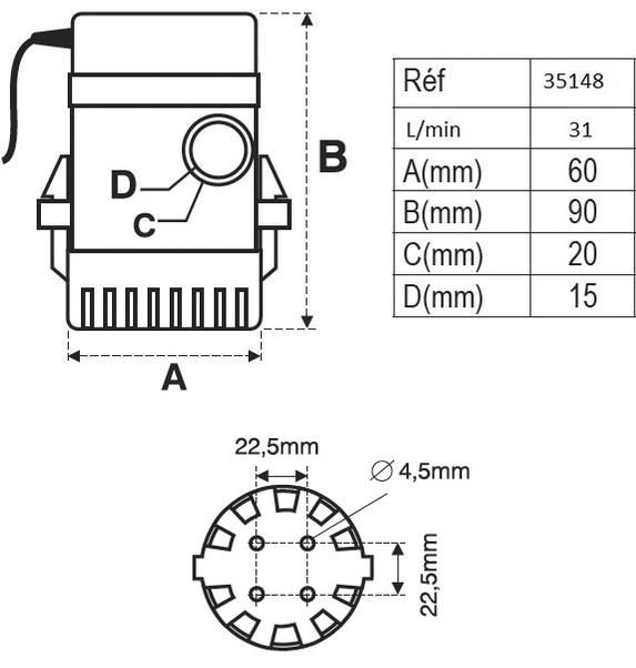 Pompe de cale immergée pour assurer un pompage efficace si nécessaire dans la cale de votre bateau.