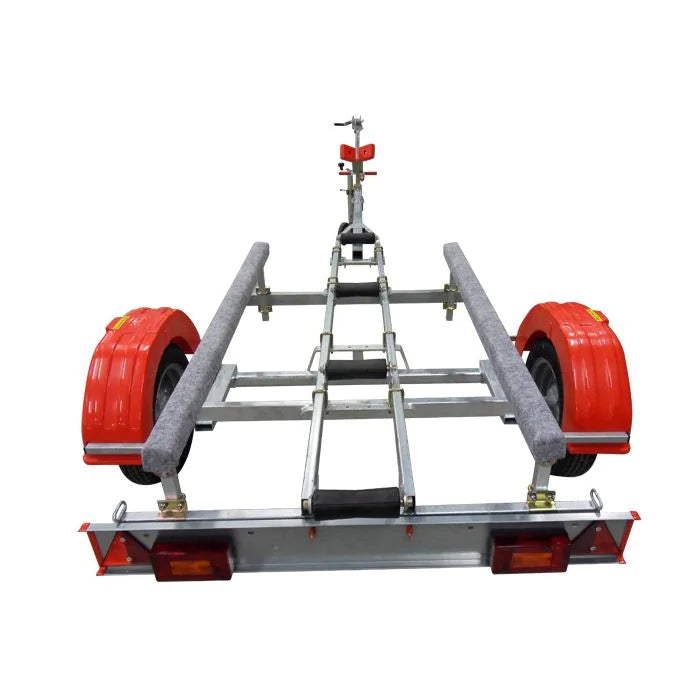 Pour des courtes distances (50km aller / retour), vous pouvez choisir la remorque Nautic Plus. Le modèle conseillé est la remorque GT Grand Tourisme qui convient pour de plus longs trajets. Enfin, pour les plus exigeants, la remorque GT Grand Tourisme basculante (timon articulé) est parfaitement adaptée pour des mises à l'eau non aménagées. Choisissez la taille des roues qui vous convient le mieux pour les remorques GT : soit 450x10, soit des roues de voiture de 13 pouces.