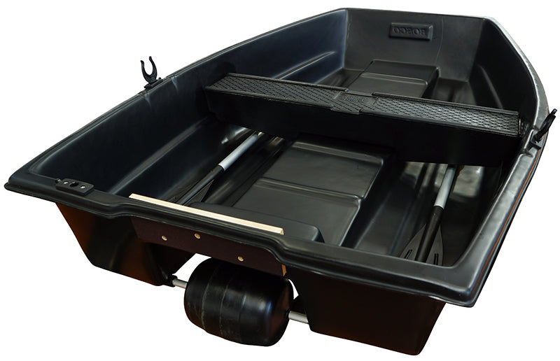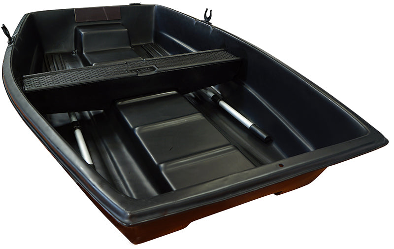 Barque simple coque en polyéthylène haute densité, teinté dans la masse traité anti UVs, imputrescible et sans entretien. Coques monoblocs sans soudure en polyéthylène haute densité. Barque fond plat pour stabilité maximum. Idéale pour la pêche mais aussi pour l'entretien des mares ou petits lacs.
