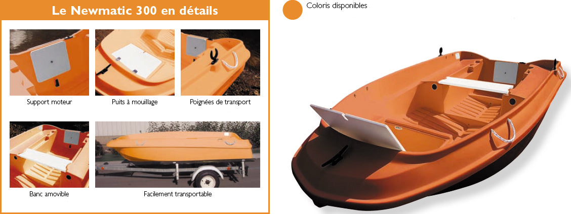 La barque de Sécurité NEWMATIC 300 est fabriquée en France, c'est une barque à double coque autovideuse à l'arrêt. Coque monobloc sans soudure en polyéthylène haute densité, traité anti UVs, imputrescible, sans entretien. Barque conforme aux exigences de la directive 2013/53/UE module B+F.