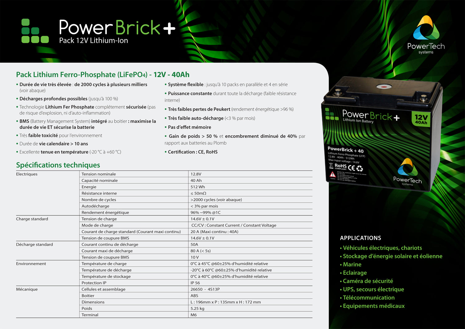 - Technologie lithium fer phosphate complètement sécurisée ( pas de risque d'explosion, ni d'auto-inflammation)