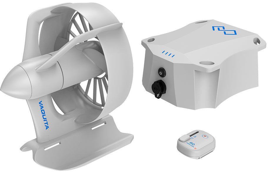 La commande à distance du Vaquita dispose de 8 vitesses avant, d'un indicateur LED et d'une fonction d'arrêt d'urgence. Facile d’utilisation, son bracelet est d’autre part spécialement conçu afin d’éviter toute irritation sur la peau, il est agréable à porter même pendant des heures !