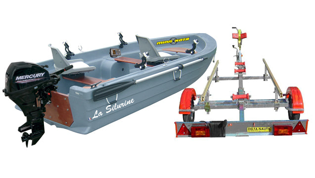 Vous avez la possibilité de choisir la puissance de la motorisation Mercury. Vous choisissez également votre remorque en fonction de la taille des roues souhaitée. Les remises packs sont automatiquement générées sur le prix indiqué.