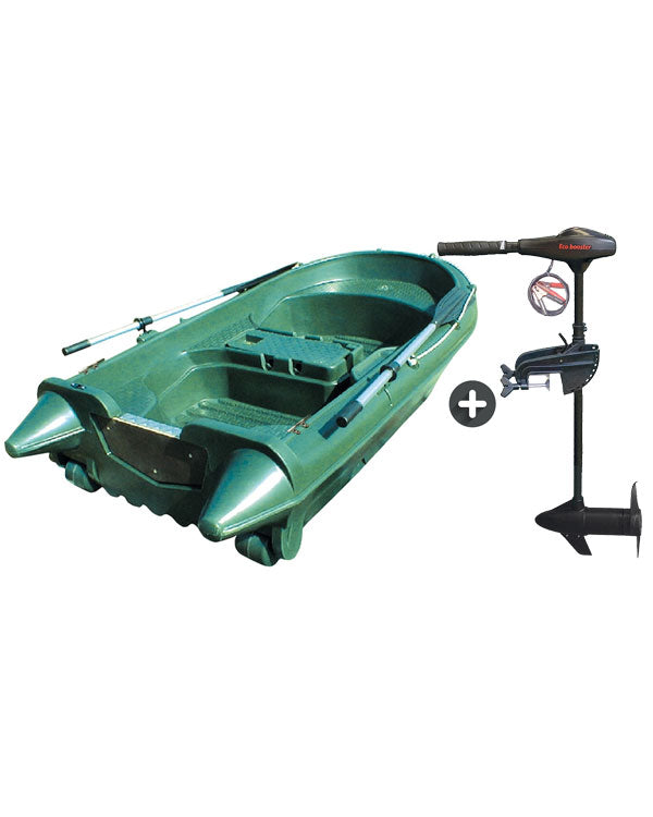 Ce pack comprend la barque N°6 Campeuse 2,49m et son moteur électrique Eco Booster 36 lbs 12v. Vous vous déplacerez ainsi sans effort et en silence. Choisissez la couleur de votre barque en cliquant sur les carrés colorés ci dessous : le prix sera recalculé automatiquement.