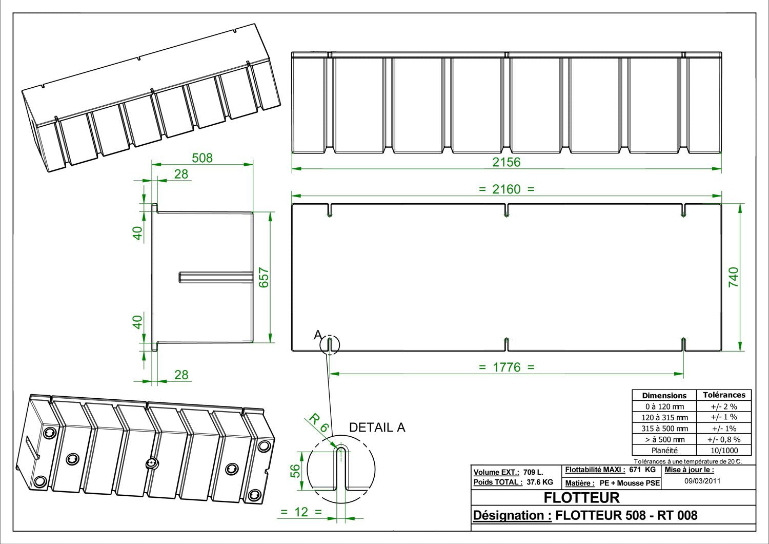 Le flotteur HT 508 est utilisé pour la réalisation de pontons pour l'accostage de bateaux, avec une portance de 671 kg / flotteur.