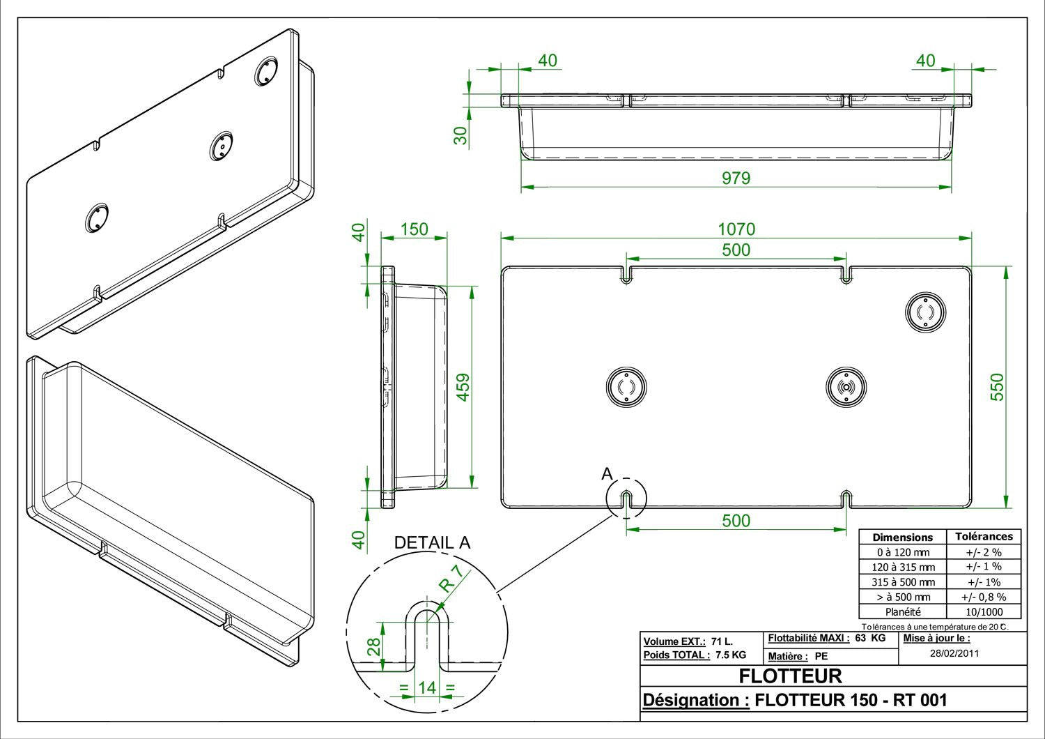 Le flotteur HT 150 est utilisé pour la réalisation de plateformes "proches" de l'eau, avec une portance de 63kg / flotteur.