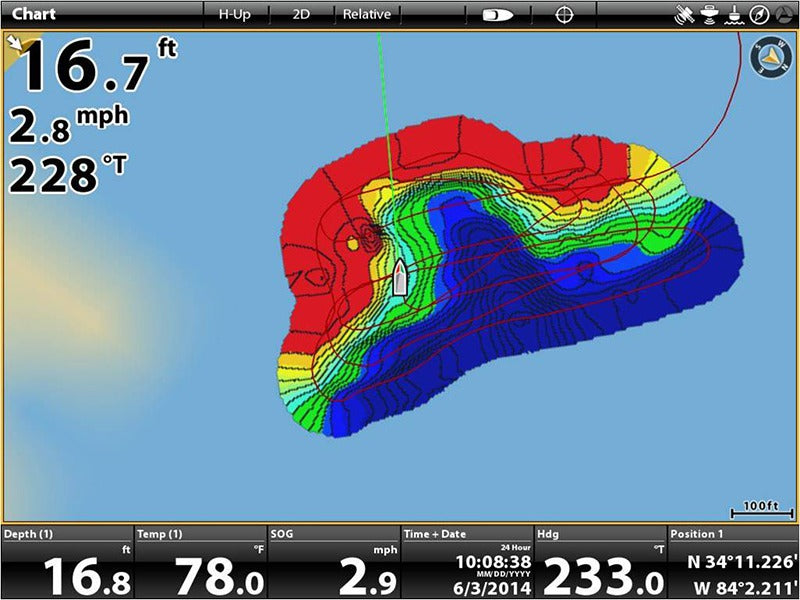 Le logiciel AutoChart Live est pré-chargé avec 8 heures de mémoire afin de donner aux utilisateurs la possibilité de créer une cartographie bathymétrique détaillée des fonds. Cette fonctionnalité permet désormais d'afficher en plus de la bathymétrie, les variations de végétation et la dureté du fond. Les cartes sont créées en direct sur l'écran au fur et à mesure de la prospection.